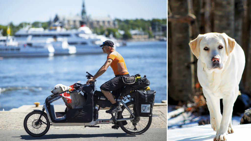 Erin, labrador di 12 anni, forte di una fiducia e di un amore incondizionato che la tiene unita al suo umano, è diventata anche la straordinaria compagna delle sue avventure, prima fra tutte il viaggio in cargo bike da Roma verso Capo Nord