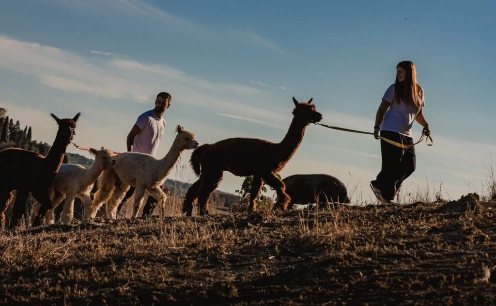 L’esempio più significativo è la prima filiera di fibre di alpaca 100% Made in Tuscany, nata nella Valbisenzio con un progetto di Greta Cherubini, 37 anni, che a Vernio ha fondato l'”Antico Feudo”. Accanto alla moda cresce l’impiego degli alpaca in ambito sociale ed educativo, come accade nell’Oasi Agrituristica di Baugiano, a Quarrata, dove Serena Attucci con Paco e Moon si dedica alle attività didattiche per bambini. A Lastra a Signa, Silvia Giovannini guida trekking slow tra vigne e boschi in compagnia dei suoi alpaca Adamo, Bruno, Camilla, Diego e Iris. Trekking anche ad Albus Alpacas di Cecilia Scheggi, in Maremma, dove accanto a passeggiate e aperitivi si svolgono anche terapie riabilitative con pazienti neuropsichiatrici. A Scandicci, invece, la veterinaria Camilla Esclapon de Villeneuve ha creato “Mio Alpaca”, progetto che unisce visite interattive, percorsi naturalistici e promozione del territorio. Vicino a Siena, Virginia Pernici dell’omonima Fattoria, laureata a pieni voti in tecniche d’allevamento animale ed educazione cinofila presso all’università di Pisa, offre una serie di attività con gli alpaca (nella foto).