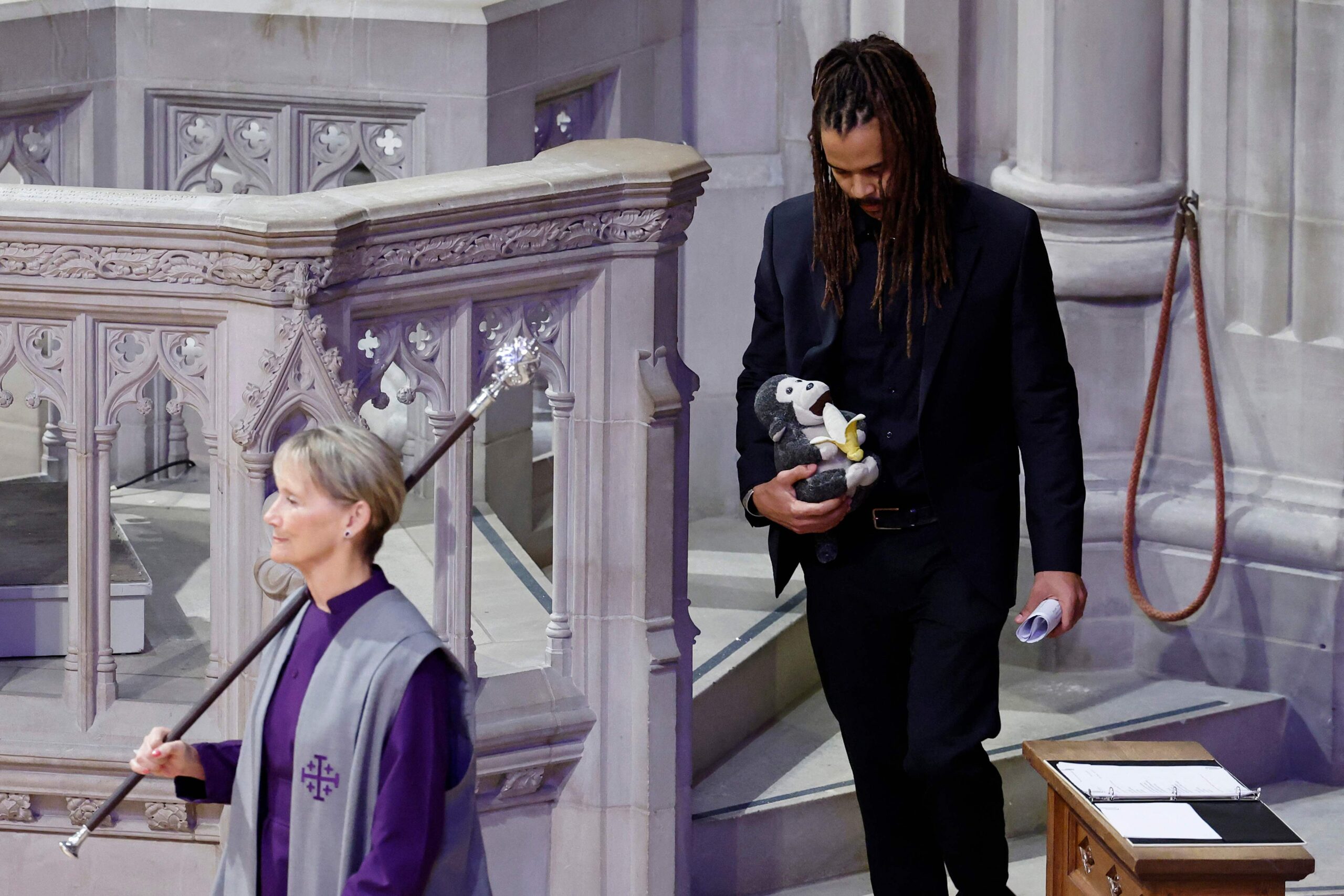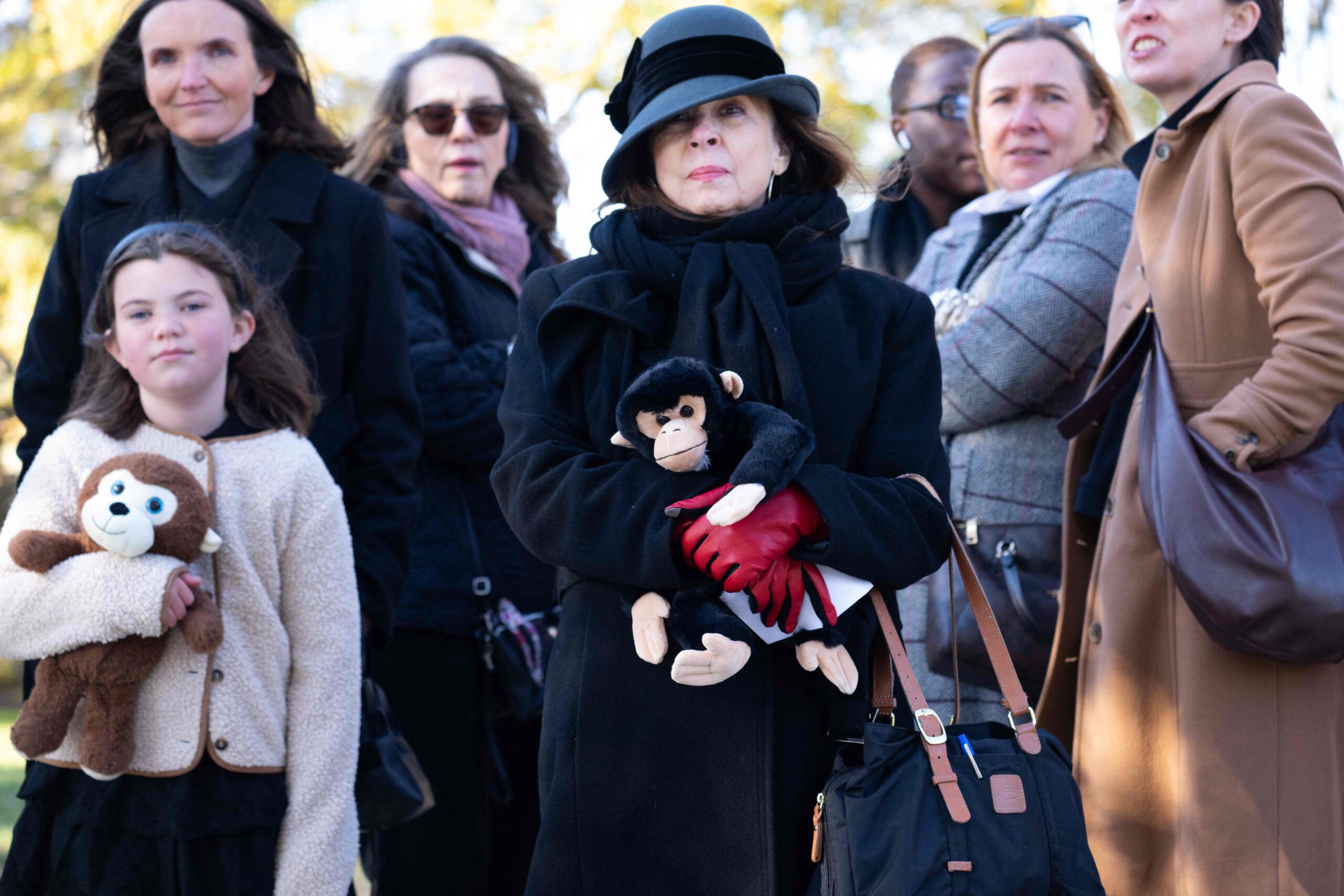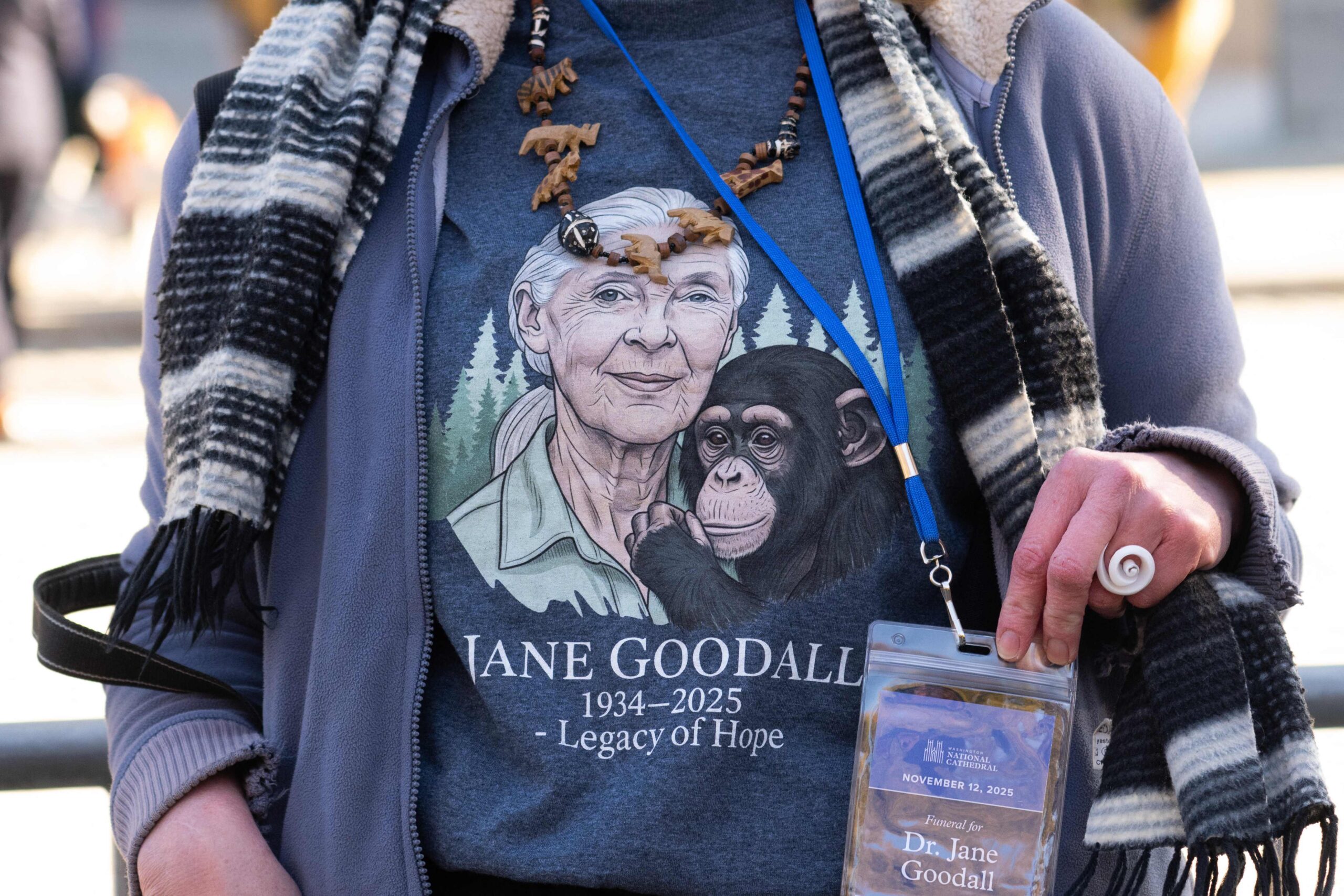 Durante la cerimonia, che rendeva omaggio all’urna con le ceneri della Goodall, in molti dentro e fuori della cattedrale tenevano in mano degli scimpanzé di pelouche, per ricordare gli oltre sessant’anni che la scienziata ha dedicato allo studio di questi primati nel loro ambiente. Tra loro anche Merlin van Lawick, nipote della Goodall. Sulle scale dell’ingresso della chiesa moltissimi sono intervenuti con i loro cani al guinzaglio, come omaggio estremo a questa donna straordinaria che ha dedicato la propria vita all’amore per gli animali.