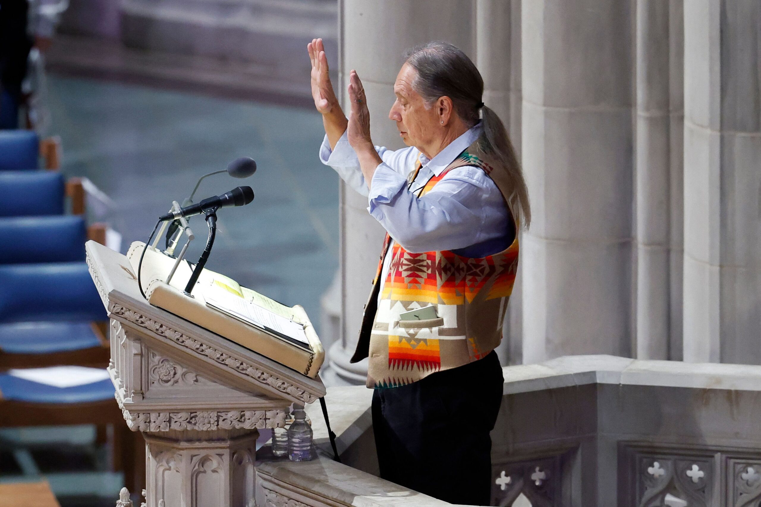 Leonardo DiCaprio, Nancy Pelosi e molti altri amici e semplici estimatori hanno partecipato al servizio funebre per la scomparsa della primatologa e ambientalista Jane Goodall, morta a 91 anni all’inizio di ottobre. La funzione si è svolta alla Washington National Catedral, nella capitale Usa. L’attore sedeva in prima fila, a pochi passi dalla parlamentare democratica ex speaker della Camera dei rappresentanti che a sua volta aveva accanto Jose Andres, fondatore e capo della World Central Kitchen. Poco distante anche Judith Goodall, sorella della defunta.