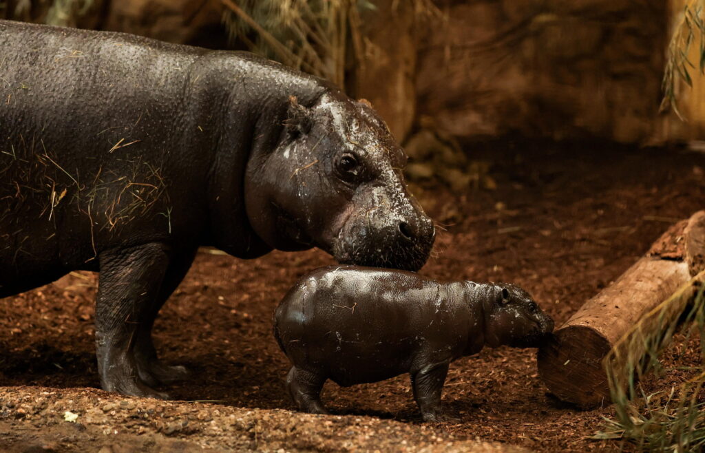 Sotto lo sguardo attento della mamma ecco la prima uscita pubblica di Panya, ippopotamo pigmeo neonato allo zoo di Duisburg, in Germania. Il cucciolo di una tra le specie animali più rare d’Europa è nato il 26 novembre ma ha trascorso due settimane in un ambiente protetto con la mamma Ayoka, allo zoo dal 2007. Panya, che significa “piccolo topo” nella lingua africana shona, è un maschio che pesava sei chilogrammi alla nascita e oggi è arrivato a dodici. Da adulto ne peserà più di 200. Per lo zoo e per il programma di conservazione europeo, la nascita è un successo. Allevare questi animali, originari delle foreste pluviali tropicali dell’Africa occidentale, è considerato difficile tanto che quest’anno sono nati solo due ippopotami pigmei, più piccoli di quelli normali, nel Vecchio Continente. La specie è “in pericolo critico” e in Nigeria è già estinta.