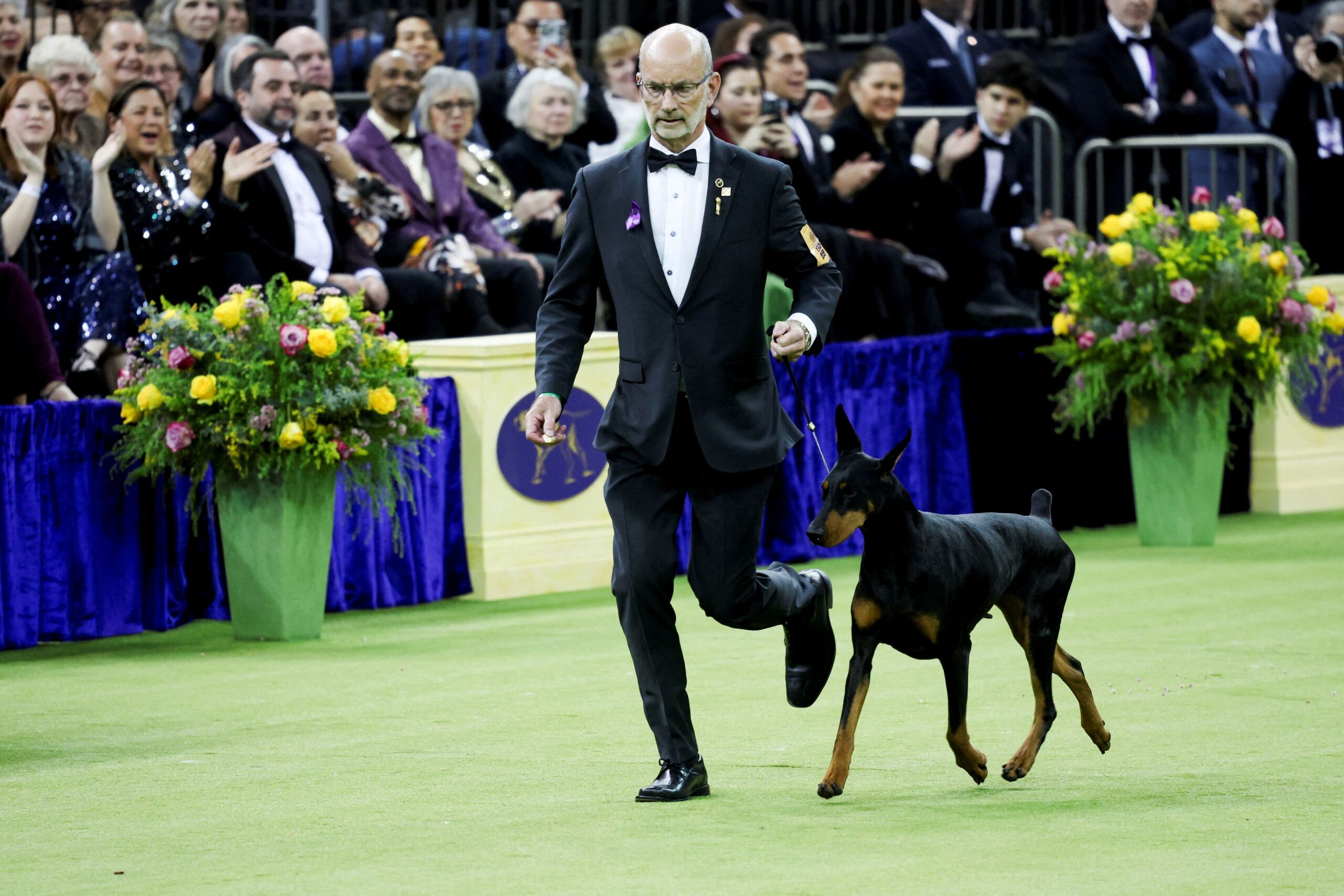 A contendere il titolo a Penny c’erano gli altri sei vincitori nei ring delle rispettive categorie: un Chesapeake Bay retriever di nome Cota, un levriero afgano di nome Zaida, un Lhasa Apso di nome JJ, un maltese di nome Cookie, un pastore inglese di nome Graham e un fox terrier a pelo liscio di nome Wager. Il conduttore di Penny, Andy Linton, è un veterano che ha già vinto con un altro dobermann, Indy, il Wkc nel 1989. Descrive così la nuova detentrice del titolo 2026: “In genere è molto tranquilla ma può agitarsi parecchio per un cattivo o per uno scoiattolo”. Il comproprietario Greg Chan di Toronto ha detto che Penny è “molto esigente e molto intelligente ma anche accomodante”, perchè “farebbe qualsiasi cosa per il cibo. Il suo spuntino preferito? Tutto”.