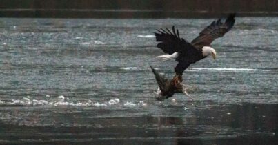 • Un’aquila cattura un gabbiano sul laghetto di Central Park a Ny