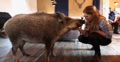 • Oscar, il cinghiale salvato dalla caccia è diventato un animale di casa