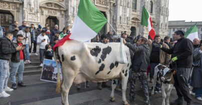 • Proteste agricoltori, in piazza Duomo a Milano anche vacca e vitellino